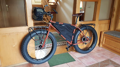 Otóż w zasadzie skompletowaliśmy sprzęt, którego lista w moim przypadku ma 154 pozycje. I to licząc takie rzeczy jak np. apteczka jako jedną sztukę bez wyszczególniania ich zawartości. Jest więc tego całkiem sporo. I gdyby nie fakt, iż Piotrek wciąż jeszcze nie ma swojego roweru, do nabycia pozostałoby nam zaledwie kilkanaście drobiazgów, których kupno z różnych względów musimy odłożyć do ostatnich dni przed wylotem (np.: krem z filtrem czy doładowanie telefonu satelitarnego), albo też kupimy je już na miejscu w Australii (np.: papier toaletowy, żywność). Ukoronowaniem gromadzenia ekwipunku wyprawowego była moja wizyta w niedzielę 11 grudnia w warszawskiej firmie Velove, podczas której wreszcie odebrałem swojego "grubasa". Od tego czasu stoi u nas w domowej bibliotece na honorowym miejscu, gdzie poddawany jest drobnym, acz niezbędnym usprawnieniom. W marcu czeka nas jeszcze jeden wyjazd do Velove, celem wprowadzenia drobnych modyfikacji w pierwotnej konfiguracji roweru połączony z odwiedzinami w białostockiej firmie Crosso, która ofiarowała nam swoje sakwy.